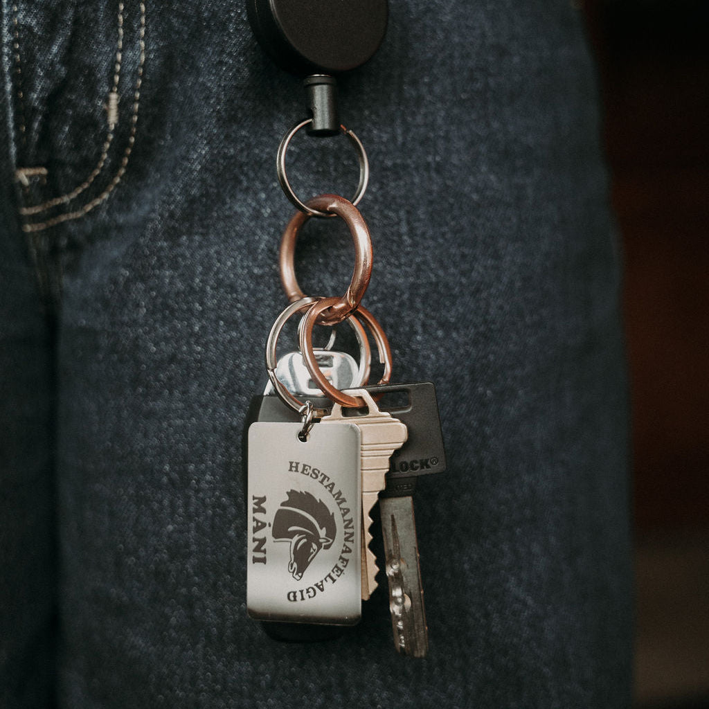 Handgerð stál lyklakippa með áletrun